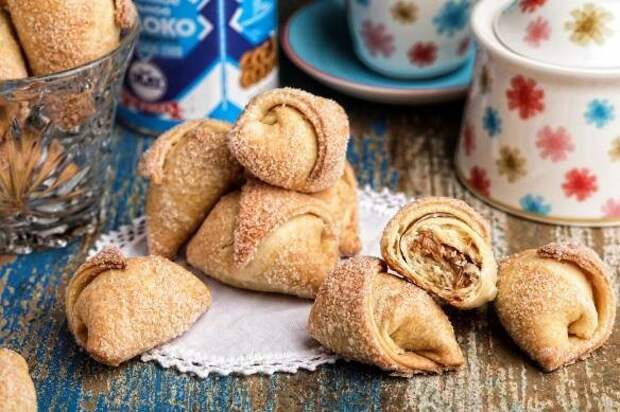 Ингредиенты: - Яйцо - 1 шт. - Сахар - 20 г. - Соль - щепотка - Сметана - 100 г. - Экстракт ванили - по вкусу - Ванильный сахар - 8 г. - Масло подсолнечное - 50 г. - Мука - 250 г. - Вареная сгущёнка - 150 г. - Разрыхлитель - 5 г. Приготовление: 1. Смешиваем яйцо, ложку сахара, чуть соли, сметану, ванильный сахар, растительное масло без запаха и хорошо перемешиваем. 2. Разрыхлитель добавляем в несколько заходов 250г муки. Замешиваем мягкое тесто, которое не липнет к рукам. 3. Разделим тесто на две части, раскатываем пласт толщиной 3мм и делим на 8 частей. Начинки из варёной сгущенки достаточно 1 ложки на 1 рогалик. 4. Закручиваем рогалики и выпекаем при 180 градусах 20-25 минут. Рогалики должны быть светлые. #рогалик #рогаликсосгущенкой #выпечка #десерт #вкусно #вкуснятина #вкусныерецеты #вкусноиполезно #вкуснаяеда #вкусныеблюда Больше интересных статей здесь: Выпечка. Источник статьи: Рогалики со сгущёнкой.